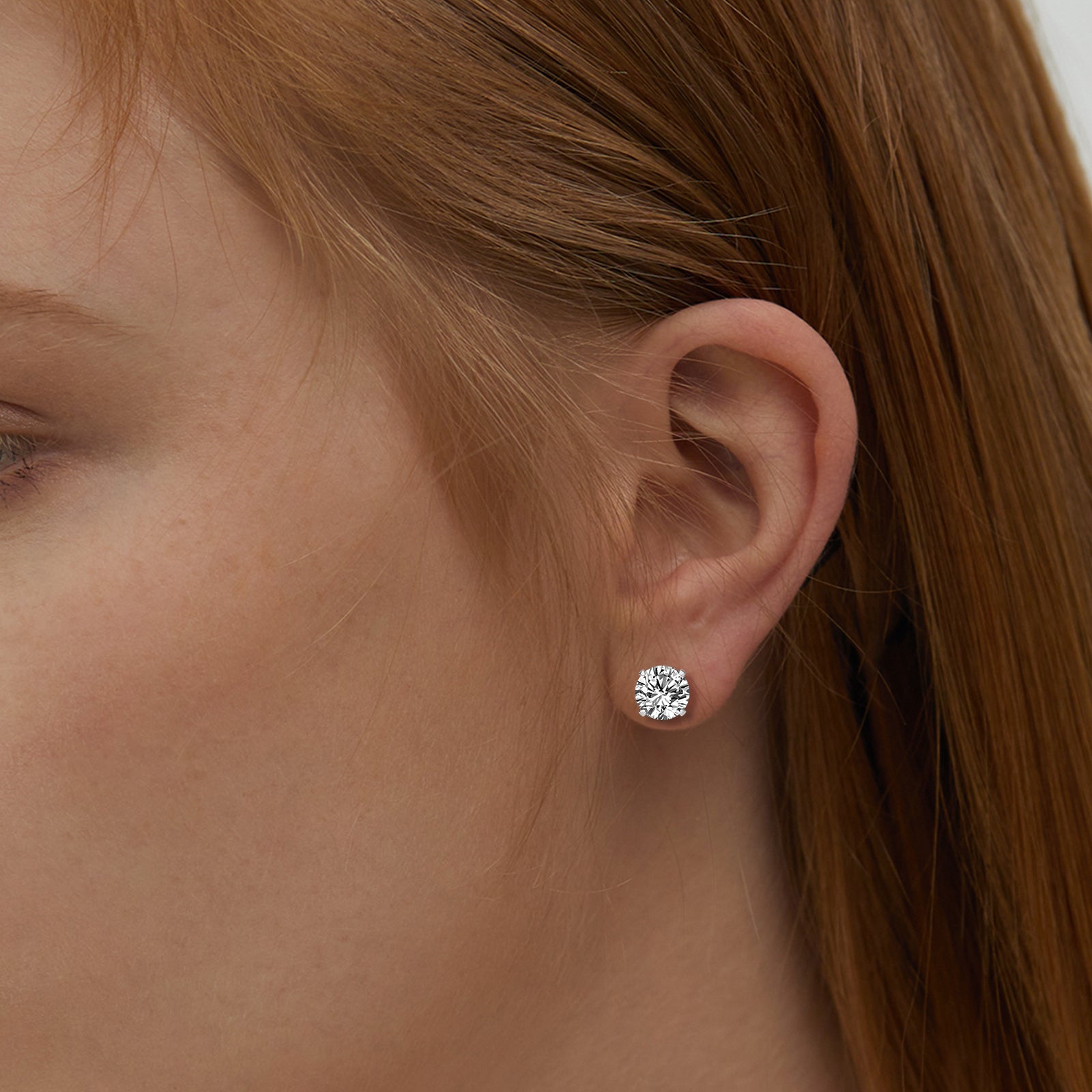 1.06 ctw Round Lab Grown Diamond 4 Prong Stud Earrings 9K White Gold